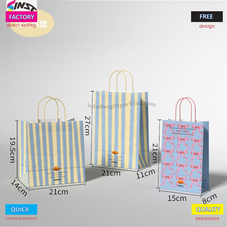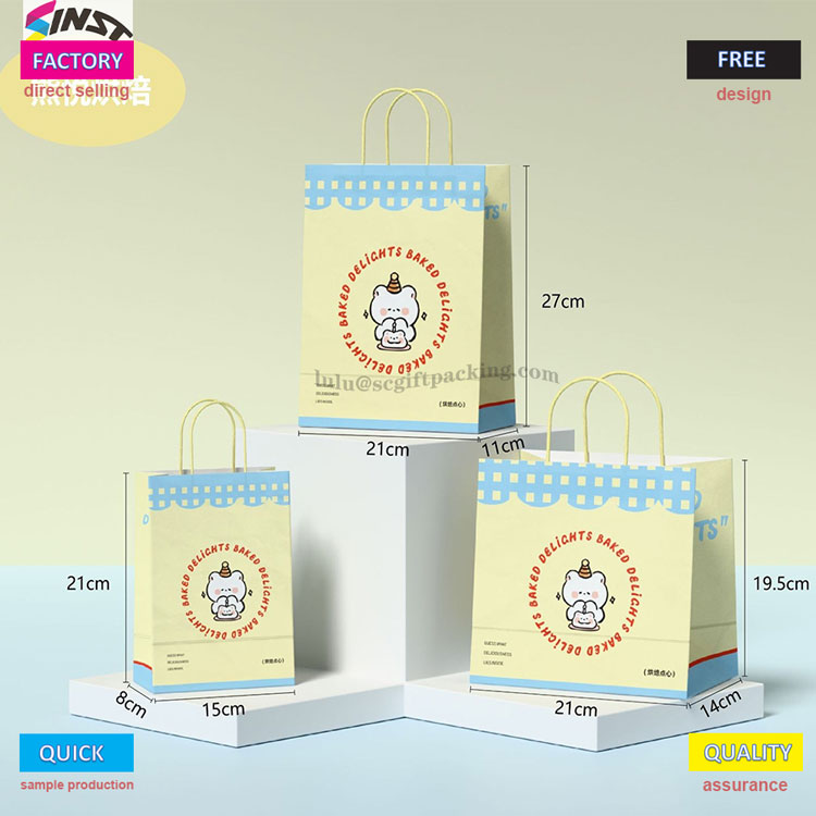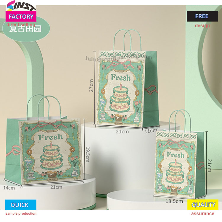 Sisi tas diintegrasikan dengan logo seperti "memanggang" dan "kue", secara alami memadukan elemen merek untuk meningkatkan eksklusivitas dan kualitas tas hadiah. Tas hadiah ini tersedia dalam berbagai ukuran, mencakup kue kecil, kotak hadiah dim sum dan ukuran hadiah lainnya. Apakah itu hadiah keluarga atau distribusi pesta ulang tahun, Anda dapat menemukan ukuran yang tepat, praktis dan perhatian.