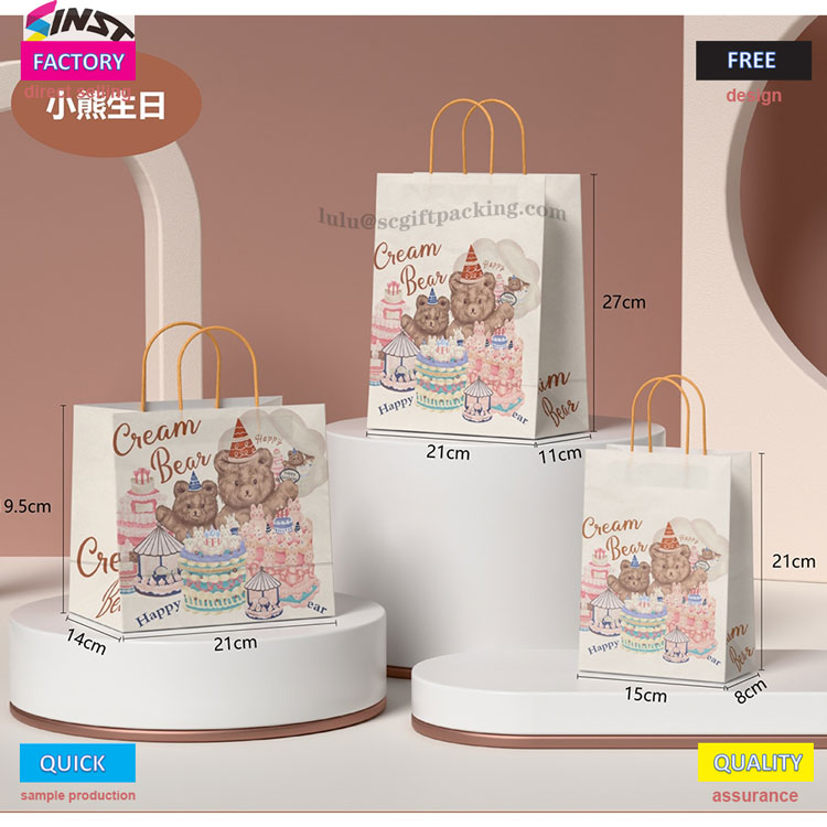 Kemasan yang lucu dan menyenangkan dari tas hadiah hidangan penutup ulang tahun ini menerangi rasa upacara ulang tahun. Dengan "Little Bear Birthday" sebagai elemen inti, tas dicetak dengan pola kartun kecil yang mengenakan topi ulang tahun, dikelilingi oleh elemen ulang tahun klasik seperti kue dan korsel. Kata -kata "selamat ulang tahun" dicetak di dalamnya, dan tas itu menyampaikan suasana yang hangat dan indah secara keseluruhan, yang juga merupakan pembawa lucu untuk menyampaikan berkat.