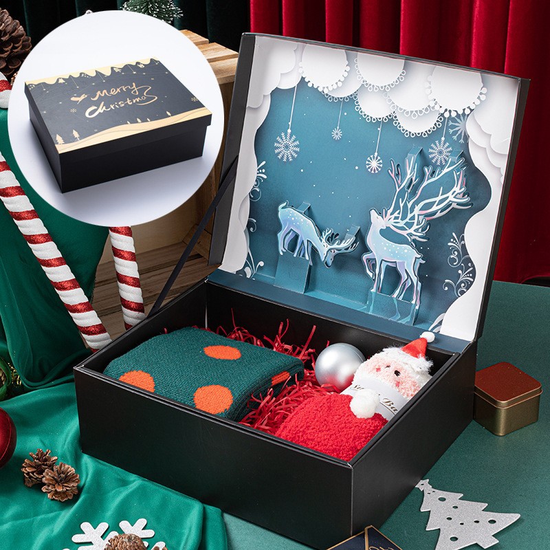 2. Efek stereoskopis 3D: Melalui desain yang cerdas dan teknik lipat, membuka kotak itu menyajikan adegan Natal tiga dimensi, memberi orang dampak visual yang kuat, seolah-olah mereka berada di dunia dongeng mini Natal.