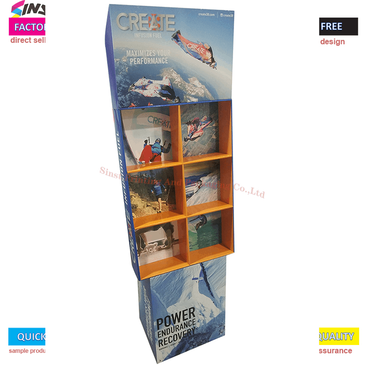 Dudukan lantai kompartemen karton bubuk energi mengadopsi konsep desain kisi, pencetakan definisi tinggi, dan warna-warna indah untuk menarik perhatian; Sinst menggunakan karton bergelombang berkekuatan tinggi, yang sepenuhnya ramah lingkungan dan dapat didaur ulang; Selama Anda melihat gambarnya, kami dapat menyesuaikan sampelnya, dan semua jenis bahan serta proses di industri dapat disesuaikan dan diproduksi;