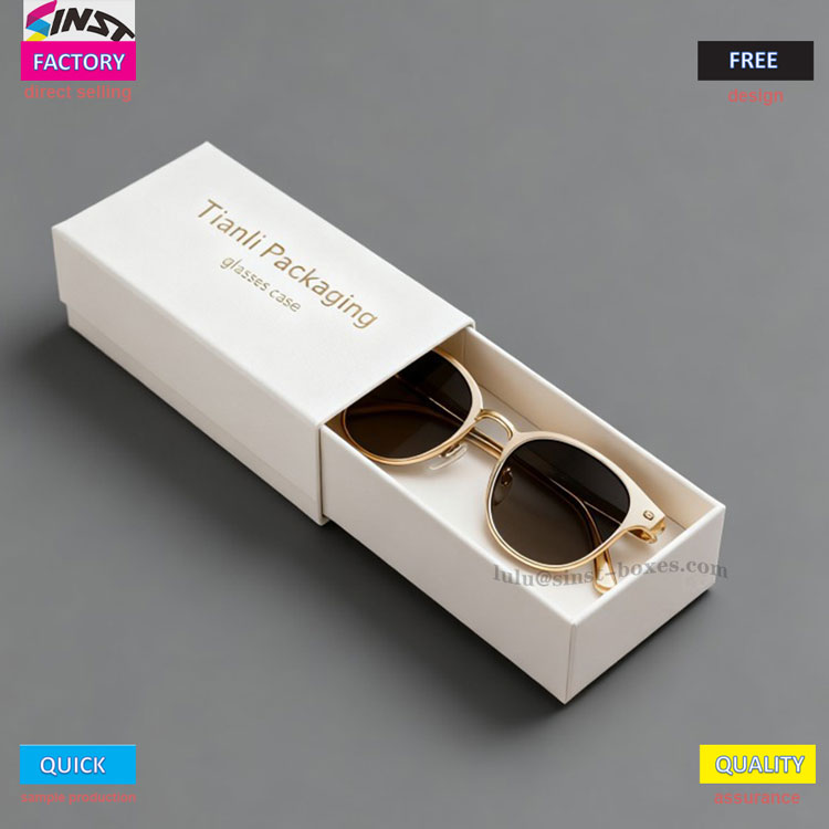 Sebagai tempat kacamata bermerek, teks hot stamping pada tutup dan badan kotak terasa bertekstur, yang sekilas membedakannya dari tempat penyimpanan kacamata biasa lainnya. Keserbagunaan kotak kado Kacamata lebih menonjol: merupakan kotak penyimpanan kacamata biasa untuk penggunaan sehari-hari, dengan laci yang tertata rapi; Saat memberikan hadiah kepada pelanggan atau teman, kemasan bergaya bisnis berwarna emas dan putih langsung berubah menjadi kotak kacamata kado yang bergaya; Jika ingin lebih eksklusif, Anda juga dapat menemukan pabrik untuk menyesuaikan dan menambahkan logo merek atau pesan berkah ke badan kotak, meningkatkannya menjadi wadah kacamata khusus yang unik - tidak hanya berisi kacamata, tetapi juga memperhatikan penerimanya.
